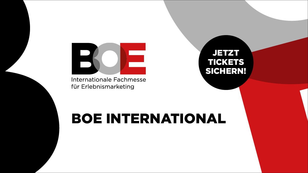 Starte mit uns auf der boe international, dem jährlichen Highlight für über 10.000 Fachleute aus dem Erlebnis-Marketing, in ein neues bahnbrechendes Jahr. Als Klassentreffen der Eventbranche ist die boe international ein fester Bestandteil der Branche.