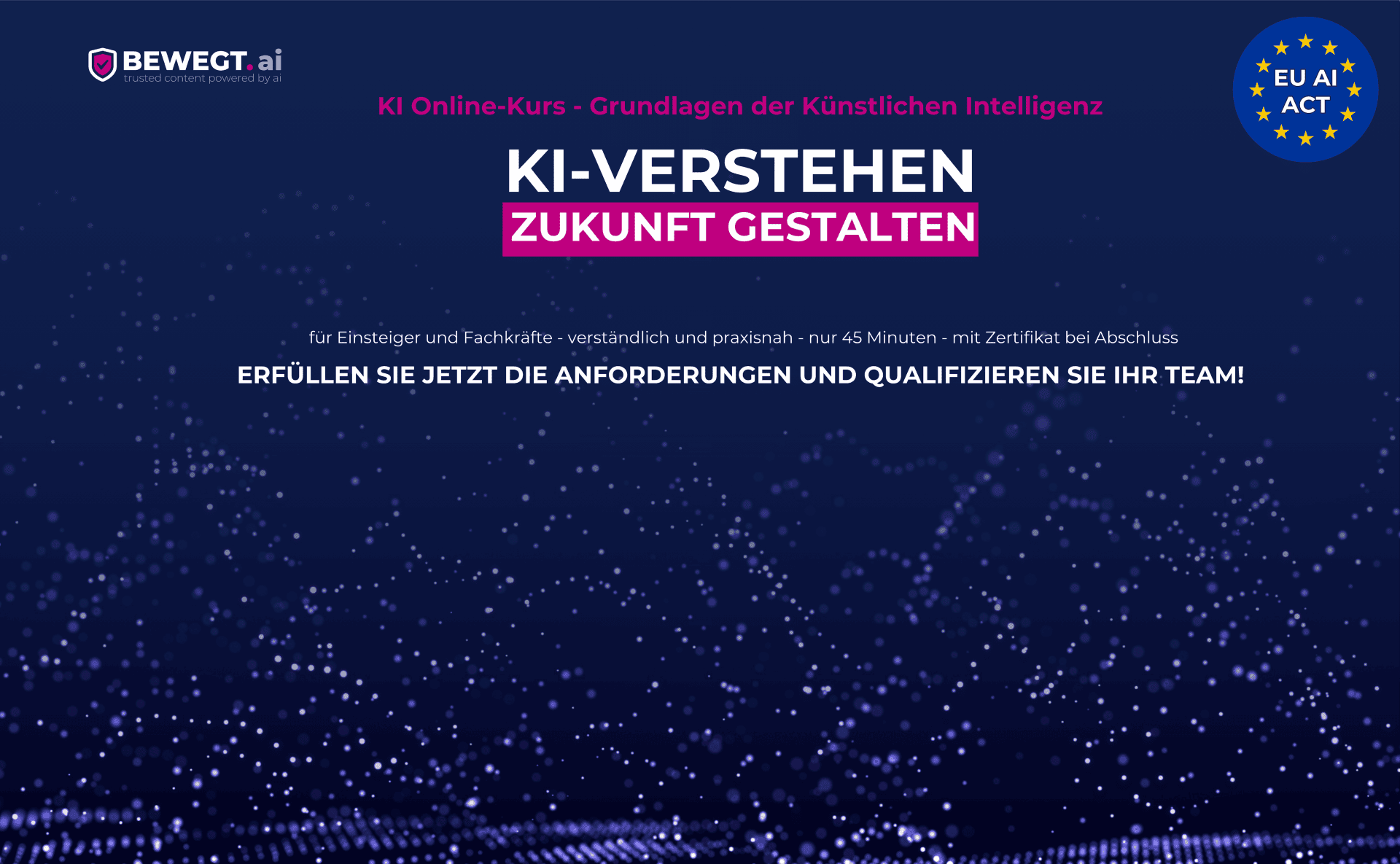 digitalUnternehmen, die Künstliche Intelligenz (KI) nutzen, müssen sich auf strengere Vorschriften einstellen: Der EU AI Act schreibt verpflichtende Schulungen für alle Mitarbeiter vor, die mit KI arbeiten. Wer sich nicht daran hält, riskiert hohe Strafen von bis zu 35 Millionen Euro oder 7 % des weltweiten Jahresumsatzes. Mit diesem Grundlagenkurs machen Sie Ihr Team flexibel und jederzeit abrufbar fit für die Zukunft!