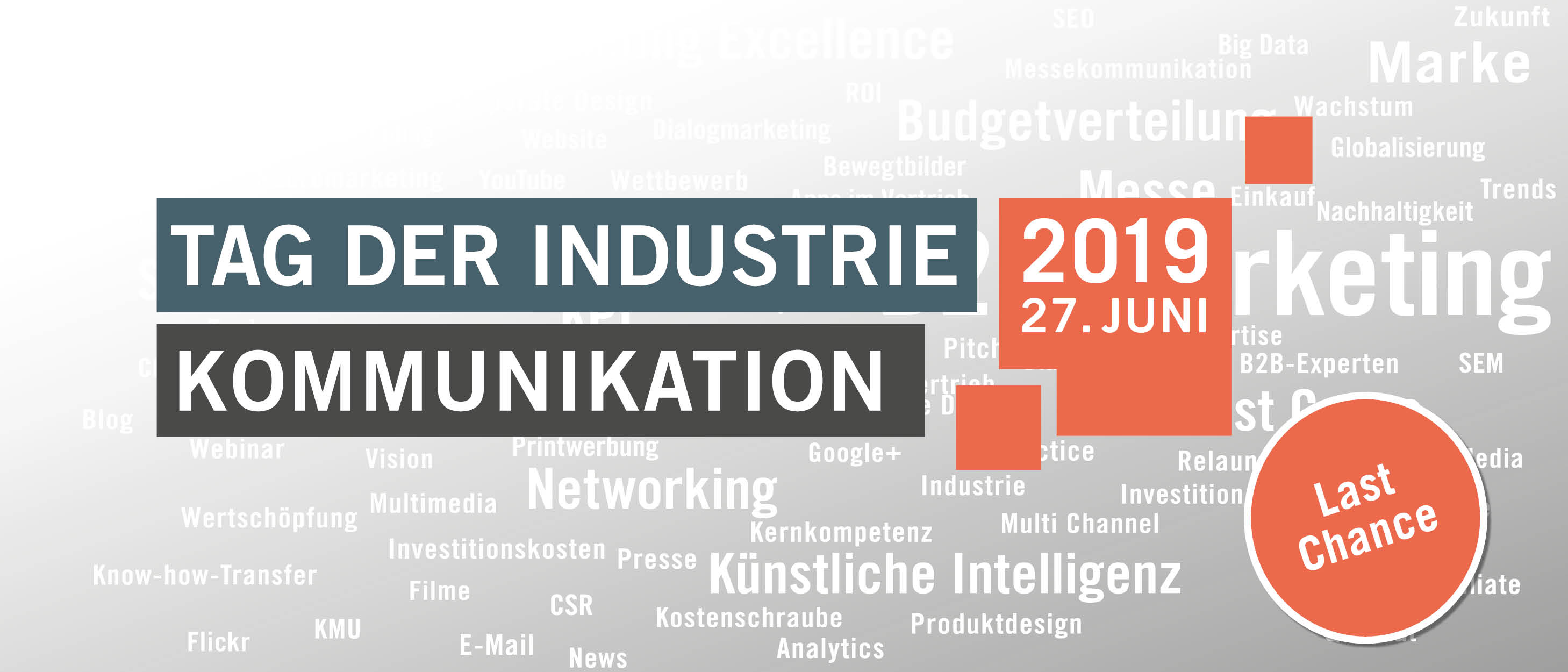 Marketing hat jetzt die Möglichkeit, seine eigene Zukunft und die des eigenen Unternehmens zu gestalten, neue digitale Produkte und Geschäftsmodelle mit zu entwickeln, seinen Radius zu erweitern und seine Bedeutung zu erhöhen! Aber die Weichen dafür müssen jetzt gestellt werden. Beim TAG DER INDUSTRIEKOMMUNIKATION am 27. Juni in Fürstenfeldbruck diskutieren wir über B2B-Zukunfts-Trends, geben Impulse und regen zum Erfahrungsaustausch an.