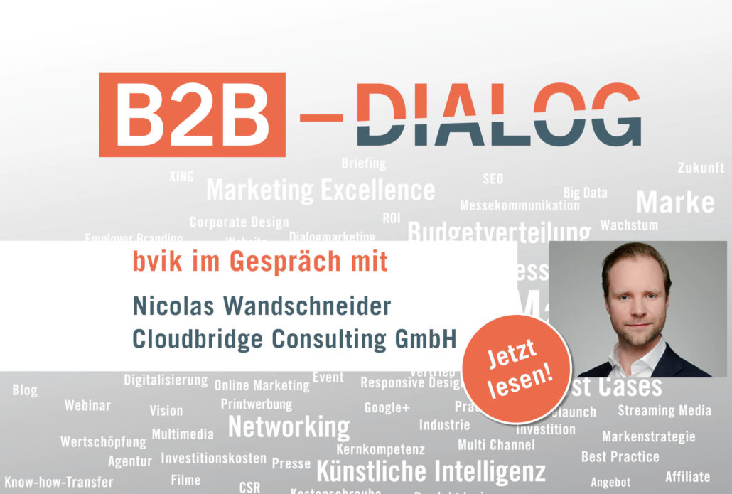 [no_toc] Nicolas Wandschneider, Managing Director bei Cloudbridge Consulting GmbH, spricht im bvik-Interview über die Bedeutung von Account Based Marketing (ABM) im B2B-Bereich. Er erläutert anhand von Best Cases, wie man ABM-Projekte zum Erfolg bringt.