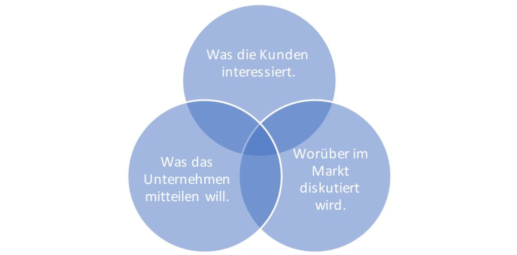 Relevanter Content – Schnittmenge aus Markttrends, Kundenbedürfnissen und Unternehmensstrategie – ist der Schlüssel zu erfolgreichem digitalen Content-Marketing. Quelle: Publitek