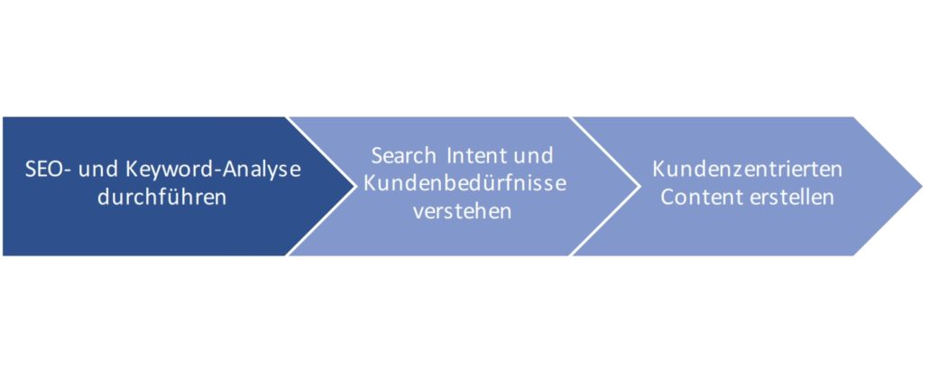 Die Google-Suchanfragen verraten eine Menge über die Interessen und Herausforderungen der Kunden. Daher bildet eine Analyse der Keywords und Search Intents eine gute Grundlage für kundenzentrierten Content.