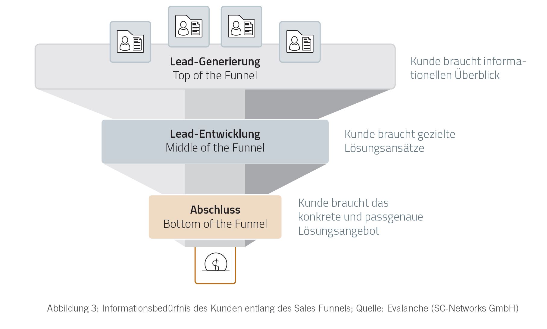 Außerdem sollte Klarheit darüber herrschen, welche Zielgruppen mit einer automatisiert gesteuerten Kampagne im ersten Schritt angesprochen und für das Unternehmen gewonnen werden sollen. Wie so oft gilt hier der Rat, klein zu starten, schnell zu lernen und das Gelernte für die größeren Kampagnen zu nutzen. Da jedes Geschäftsfeld seinen eigenen Gesetzten gehorcht, muss jeder seinen individuellen Erfolgsweg testen und immer weiter ausbauen. Im B2B-Umfeld ist die Customer Journey unendlich komplexer als im B2C-Geschäft, da wir es fast immer mit größeren Buyer Communities zu tun haben. Jeden Teilnehmer innerhalb des Kaufprozesses gilt es daher zu kennen, um seinen Bedarf definieren und mit passgenauen Inhalten im Lead-Funnel abzuholen.