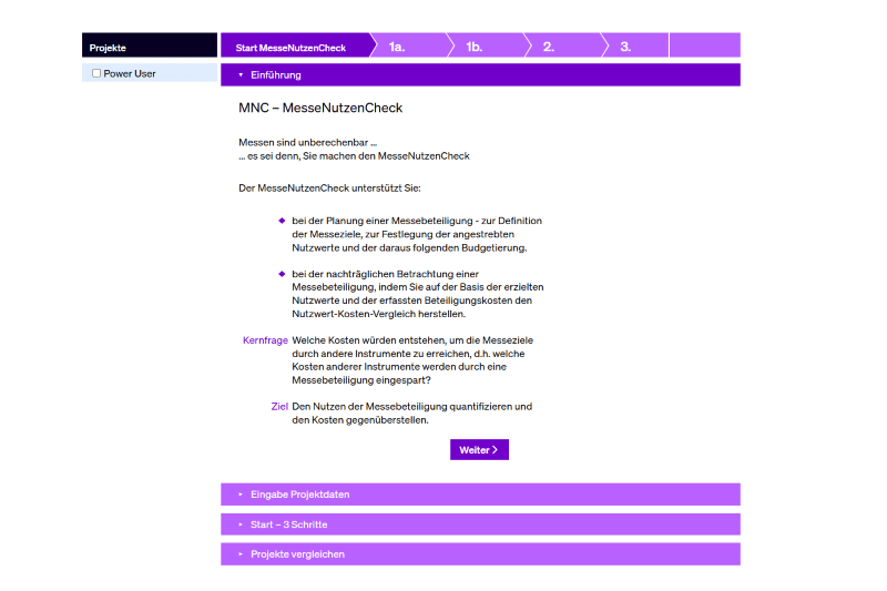 Gerade für kleine und mittelständische Unternehmen ist der MesseNutzenCheck des AUMA ein echter Gewinn, um das Für und Wider einer Messebeteiligung einzuschätzen. Als Instrument zur Nutzwertberechnung bewertet es den Mehrwert einer Messebeteiligung im Vergleich zu alternativen Maßnahmen. Die zentrale Frage lautet: Welche Kosten wären entstanden, um die gleichen Ziele ohne die Messe zu erreichen? Ein Beispiel: Wie sähe der Aufwand aus, wenn die Geschäftsführung zehn Topkundinnen und -kunden einzeln besuchen müsste, statt entsprechende Gesprächstermine auf der Messe wahrzunehmen?