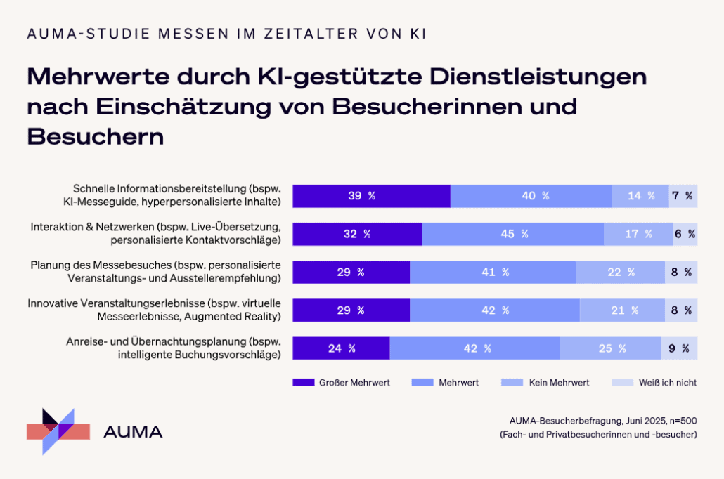 Einer der wichtigsten Befunde des AUMA: Trotz aller technologischen Fortschritte bleibt der Mensch im Zentrum aller Entwicklungen. Die Messe der Zukunft wird nicht technischer, sondern persönlicher, weil KI hilft, Begegnungen vorzubereiten, zu vertiefen oder zu verlängern.