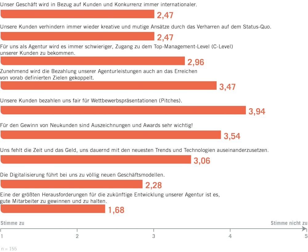 Auch die nicht faire Bezahlung von Wettbewerbspräsentationen bildet eine zentrale Herausforderung für die B2B-Werbeagenturen.