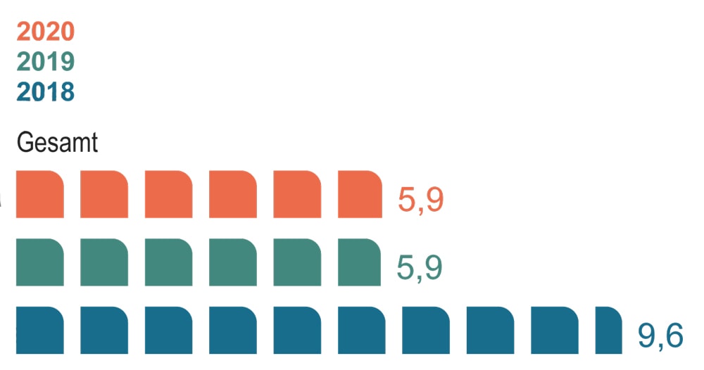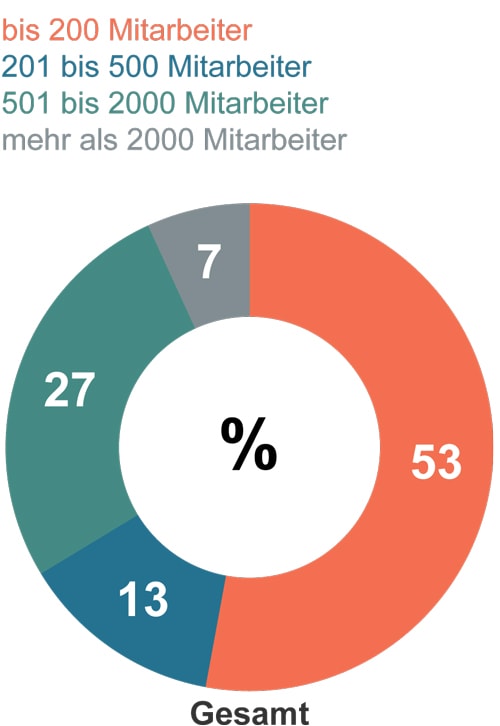 Wie bereits in den Vorjahren wurden die Erhebungsdaten mittels einer Strukturgewichtung mit den Verteilungen aus dem Unternehmensregister des Statistischen Bundesamtes zum Zwecke der Vergleichbarkeit harmonisiert.