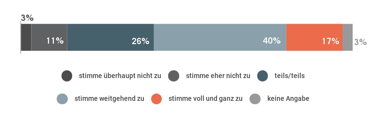 Die Ausbildung und akademische Bildung könnte in diesem Sinne grundsätzlich als solide oder ausreichend bewertet werden, jedoch kann diese „nur“ durchschnittliche Zustimmung als latente Unzufriedenheit der Befragten (B2B-Branche) und auch als erstes Frühwarnsignal in Richtung Ausbildung und Studium gedeutet werden.