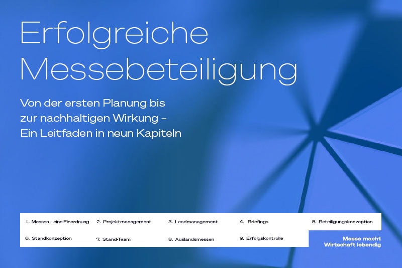 Von der ersten Planung bis zur nachhaltigen Wirkung: Tipps für das Projektmanagement, Leadmanagement, Briefings, Beteiligungskonzeption, Standkonzeption und Messebau, Stand-Team, Besonderheiten bei Auslandsmessen, Erfolgskontrolle inklusive AUMA-Messe-Nutzen-Check.