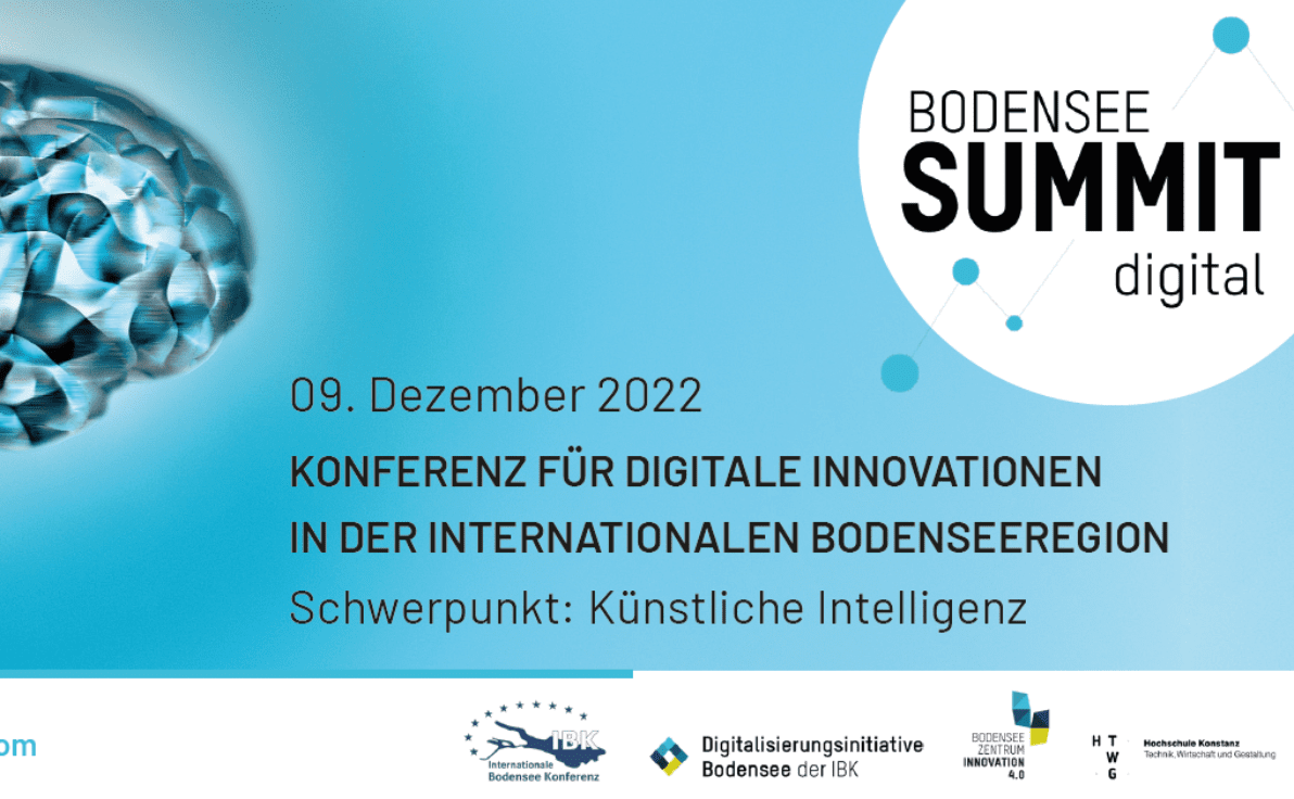 Am 9. Dezember 2022 startet von 9 bis 15 Uhr wieder der jährliche grenzüberschreitende BODENSEE SUMMIT digital, die Konferenz für digitale Innovationen. Schwerpunkt 2022 ist Künstliche Intelligenz (KI) in der Anwendung. Ein Beitrag kommt aus Bayern und beschäftigt sich mit KI und Käse. Die Veranstaltung findet virtuell statt, die Teilnahme ist kostenfrei.
