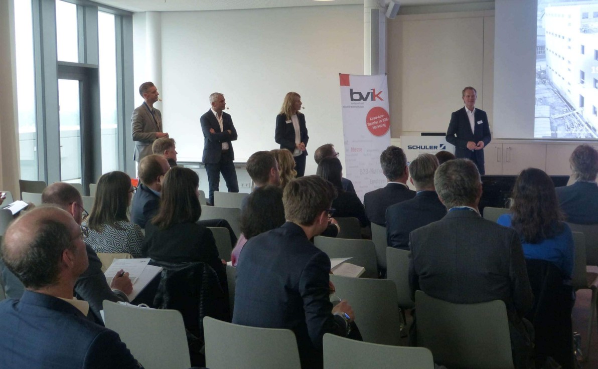 Referenten: Martina Rothenberger, Head of Integrated Communications & Heino von Dreele, Head of Marketing & Communications (beide Schuler Pressen GmbH), Andreas Kienle, Schmidhuber Brand Experience; Marcel Heller, Heller Designstudio