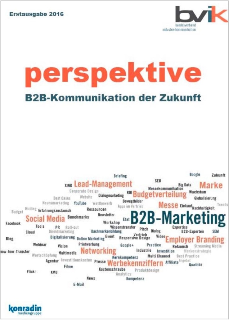 Die Erstausgabe der „perspektive“ erscheint anlässlich des TAG DER INDUSTRIEKOMMUNIKATION 2016 und ist ein Sammelband zahlreicher Fachartikel von B2B-Experten zu relevanten Themen rund um das B2B-Marketing und der B2B-Kommunikation. Fortan erscheint das bvik-Verbandsmagazin jährlich zum TIK und überzeugt mit hochwertigem Content.